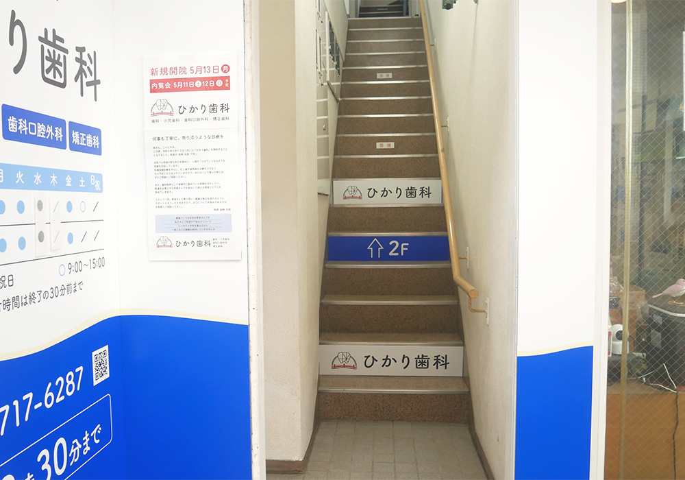診療室まで階段がございます。ベビーカーでお越しの方や、お手伝いが必要な方はスタッフがお手伝いしますので、来院時にご連絡くださいませ。